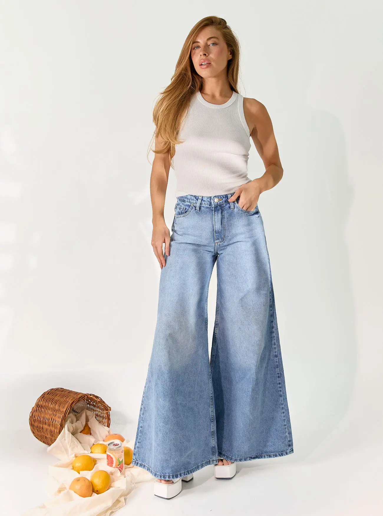 Un diseño con tiro medio y silueta super wide leg que redefine tu estilo con comodidad y personalidad. Su lavado celeste con efecto leve nevado aporta un toque fresco y moderno, ideal para cualquier look casual o urbano.Confeccionado en denim rígido 100% algodón, garantiza durabilidad y un ajuste impecable que acompaña cada movimiento.